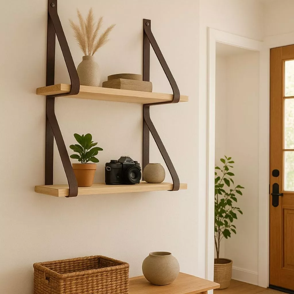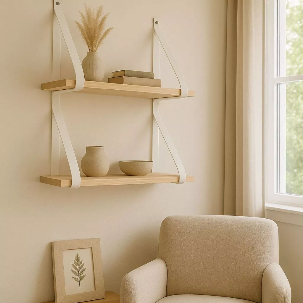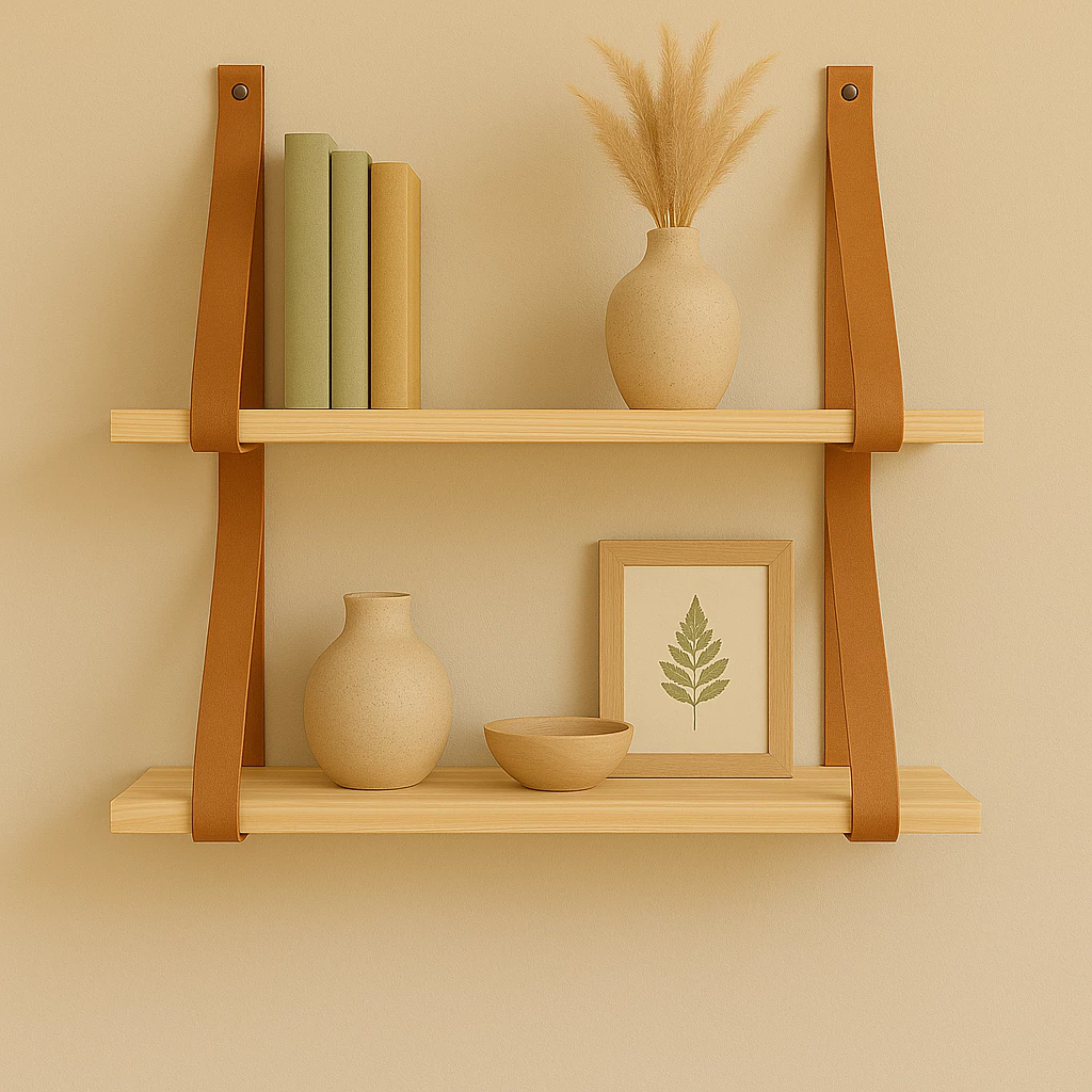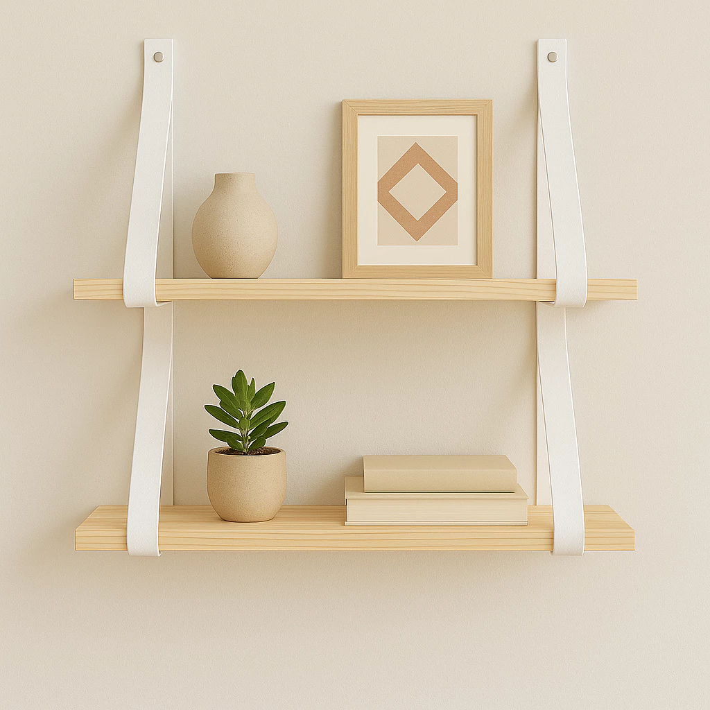 Kit com 2 Prateleiras em Madeira Pinus Natural com Alças de Couro Sintético, ideal para dar um toque moderno e funcional à decoração. Perfeitas para salas, quartos, escritórios, banheiros e cozinhas. Medida disponível: 40 cm x 10 cm (comprimento x profundidade). As alças estão disponíveis nas cores caramelo, marrom, preto ou branco, combinando com diferentes estilos como minimalista, boho ou escandinavo. Suportam pequenos objetos decorativos, livros, plantas e vasos. Acompanha kit de instalação com buchas e parafusos para fixação segura. Fácil de instalar e resistente. Produto em madeira pinus natural, sem verniz. Por se tratar de madeira maciça, pode apresentar variações de tonalidade, marcas e nós naturais, características próprias do material. [Site em manutenção] Se você clicou em “Ver detalhes” e deseja acessar a oferta, volte à página anterior e clique em “Ver Oferta”.