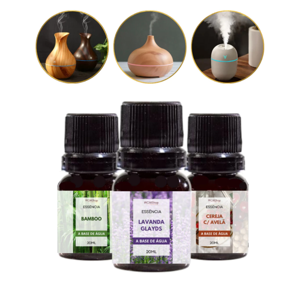 Kit Umidificador de Ar Portátil USB + 3 Essências Aromáticas