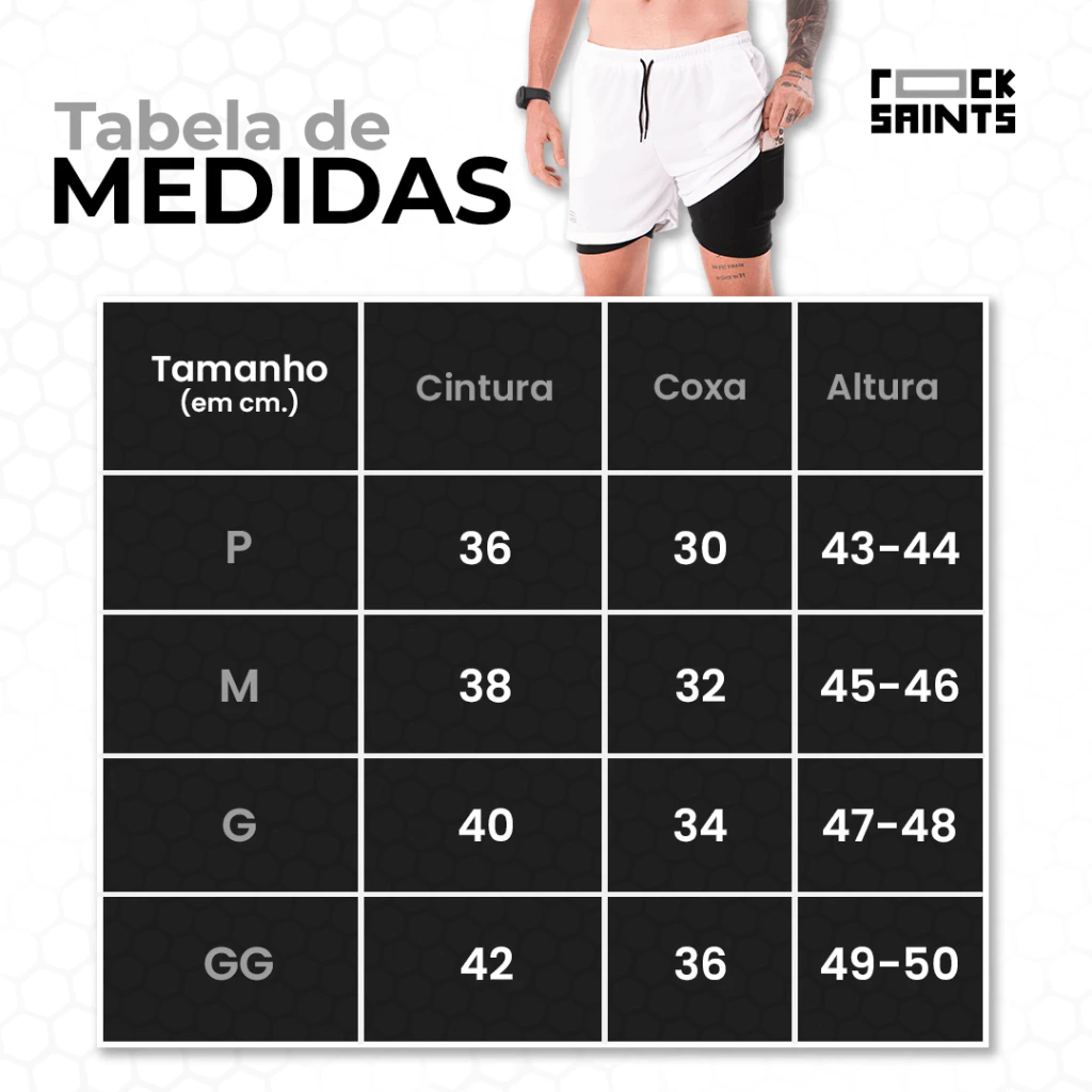O kit com 2 bermudas 2 em 1 é ideal para quem busca conforto, mobilidade e desempenho durante os treinos. Possui short externo em tecido leve e respirável e forro interno de compressão que ajuda na circulação e oferece melhor suporte durante as atividades físicas. Produzida em tecido Dry Colméia 100% poliéster, proporciona secagem rápida, ventilação e maior conforto para academia, corrida, caminhada e treinos intensos. Características • Kit com 2 bermudas • Modelo 2 em 1 com forro de compressão • Tecido Dry Colméia 100% poliéster • Tecido respirável e de secagem rápida • Bolsos laterais para praticidade • Forro com bolso para celular • Cordão de ajuste na cintura • Abertura lateral para mais mobilidade • Tecido que não amassa e possui ação antiodor Tamanhos Disponíveis P | M | G | GG Produto confortável e funcional, ideal para quem busca desempenho, praticidade e liberdade de movimento nos treinos e no dia a dia.