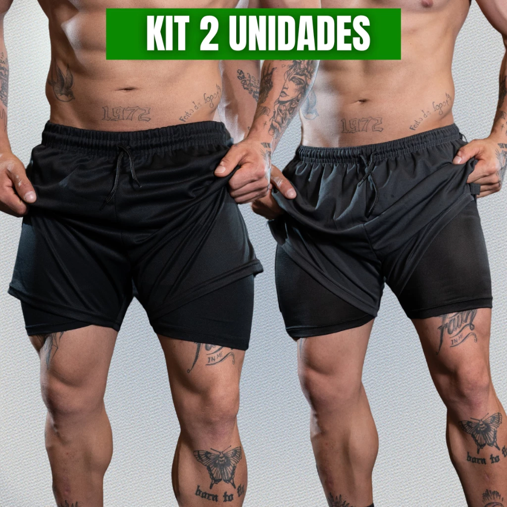 Kit 2 Bermudas Masculinas 2 em 1 com Compressão para Academia e Treino