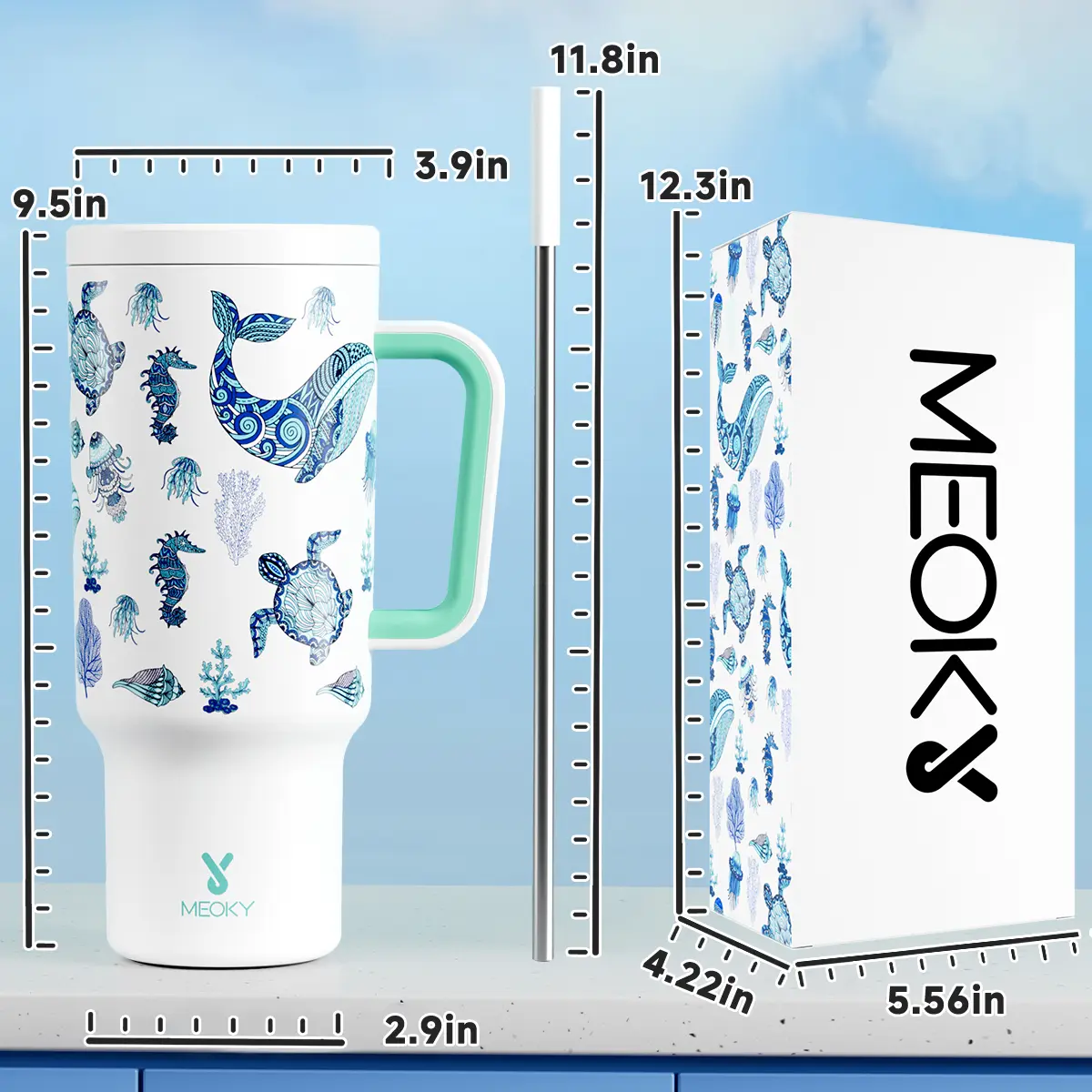 Copo Térmico MEOKY Inox 1200ml com Tampa, Canudo e Efeito Luminescente