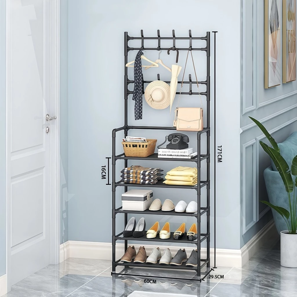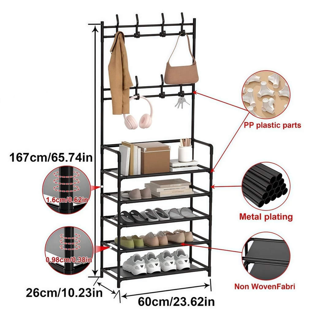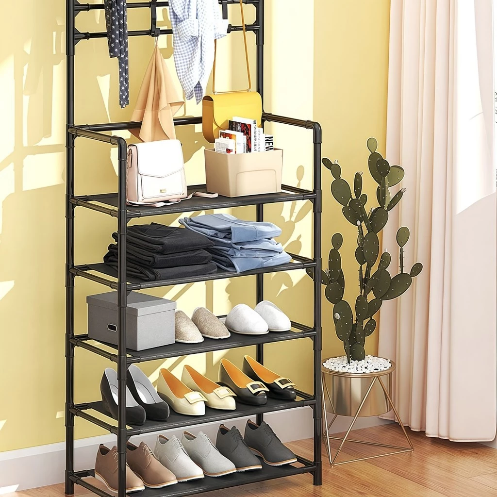rara 5 Andares Multiuso c/ Sapateira, Cabideiro e Suporte p/ Roupas, Tênis e Closet Quarto