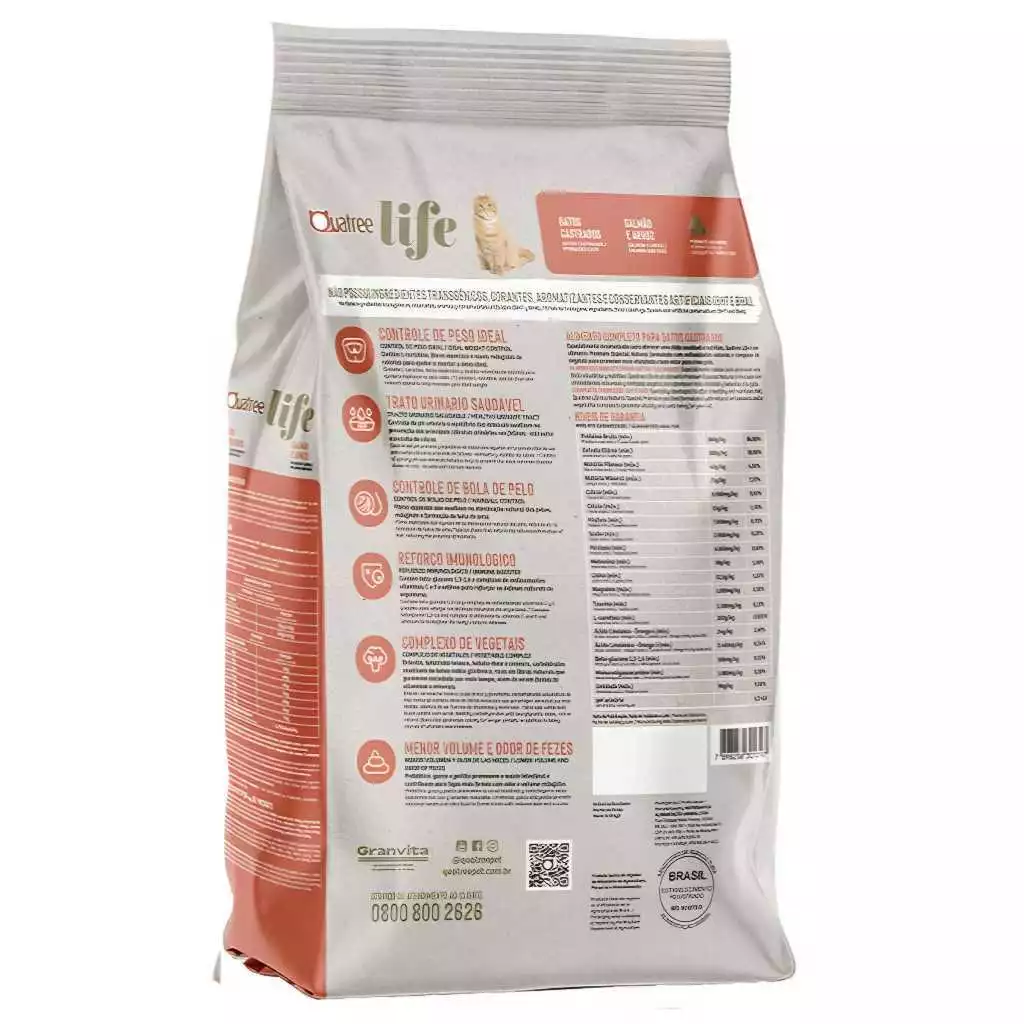 Ração Quatree Life para Gatos Castrados Sabor Salmão 10,1 kg